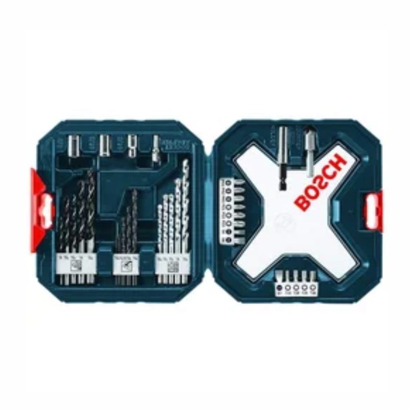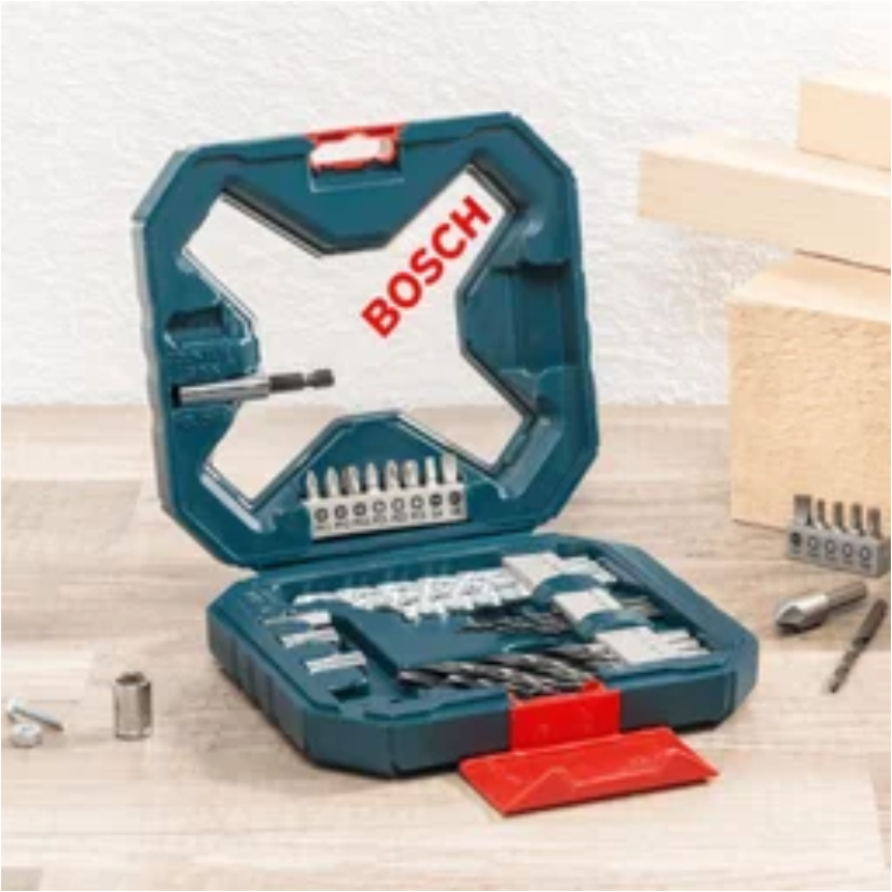 O kit de pontas e brocas em titânio X-Line Bosch é um produto completo e ideal para quem busca praticidade para executar diferentes tipos de trabalho. O kit inclui uma variedade de pontas e brocas, além de diversos acessórios que auxiliam em aplicações de parafusamento, perfuração e fixação. O design das pontas foi desenvolvido para evitar o desgaste da cabeça dos parafusos trazendo maior firmeza durante as aplicações, e possuem o encaixe em formato hexagonal que evita o deslizamento na ferramenta.